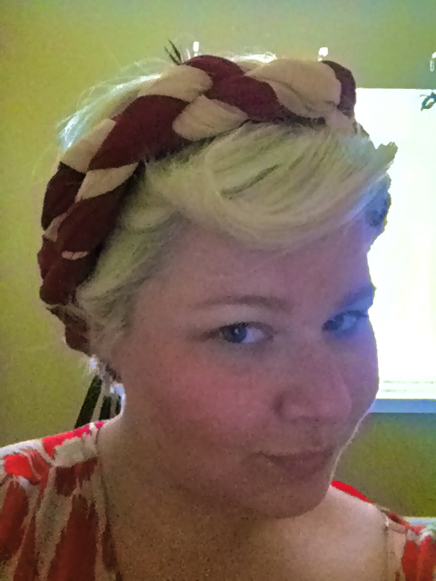 I went to Joann Fabric this weekend, and found 2 long pieces of curtain fabric remnants in perfect Gryffindor colors, twisted them together, and tied them into a turban that I am most definitely wearing to the midnight premier of Deathly Hallows part 2!!!